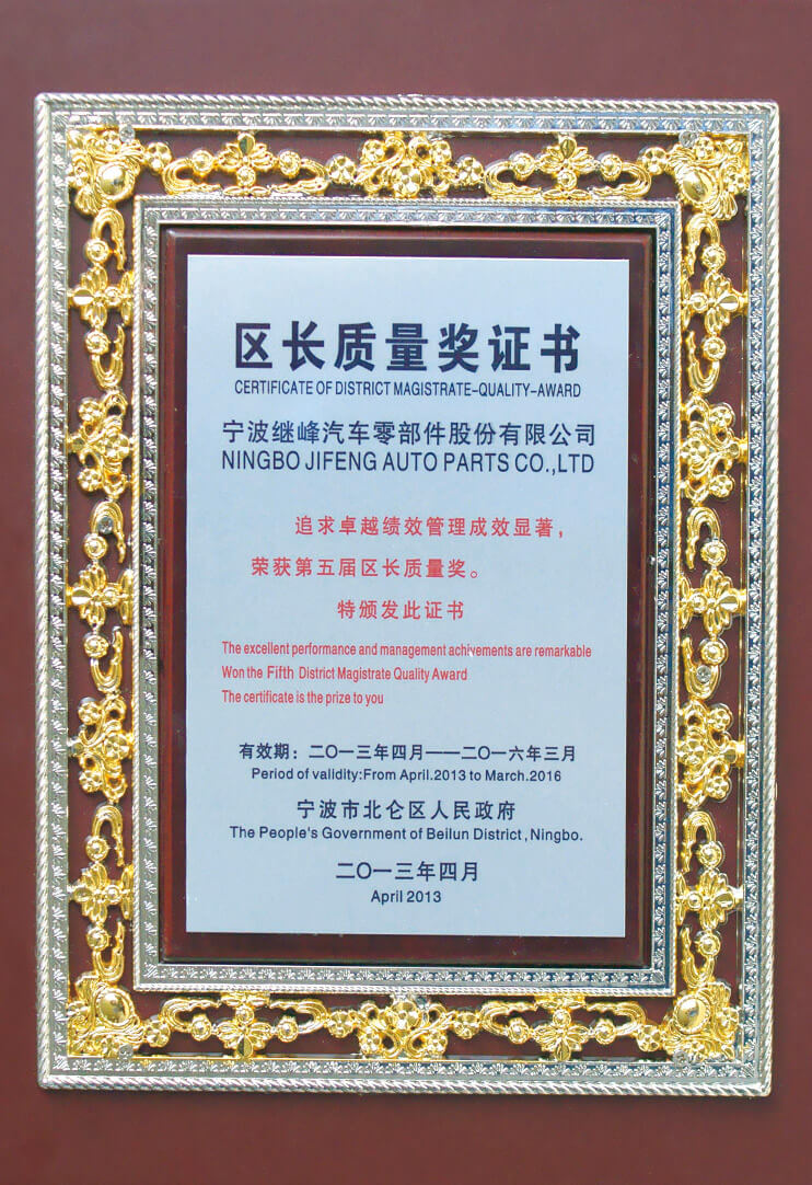 公司獲得北侖區(qū)“區(qū)長質(zhì)量獎(jiǎng)”;